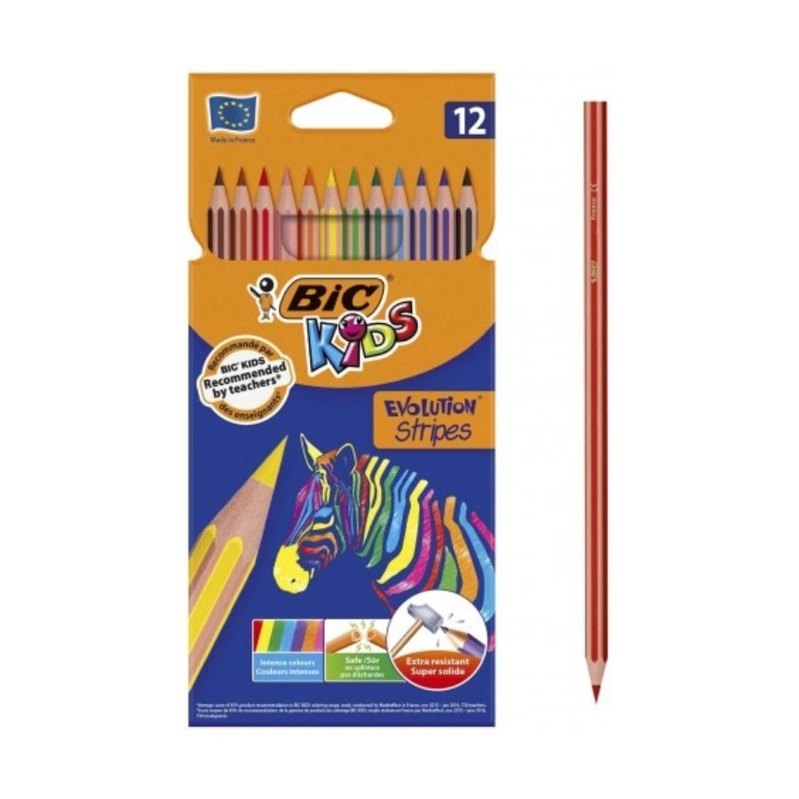 BIC KIDS EVOLUTION RAYURES LOT DE 12 CRAYONS DE COULEURS ASSORTIES